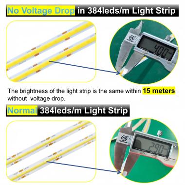 De exemplu, să presupunem că tensiunea de intrare a benzii de lampă este de 12 volți, când curentul curge printr -o secțiune a benzii de lampă, tensiunea poate scădea la aproximativ 10 volți departe de sursa de alimentare. Această cădere de tensiune va face ca banda ușoară să devină semnificativ mai întunecată la un capăt de sursa de alimentare.
